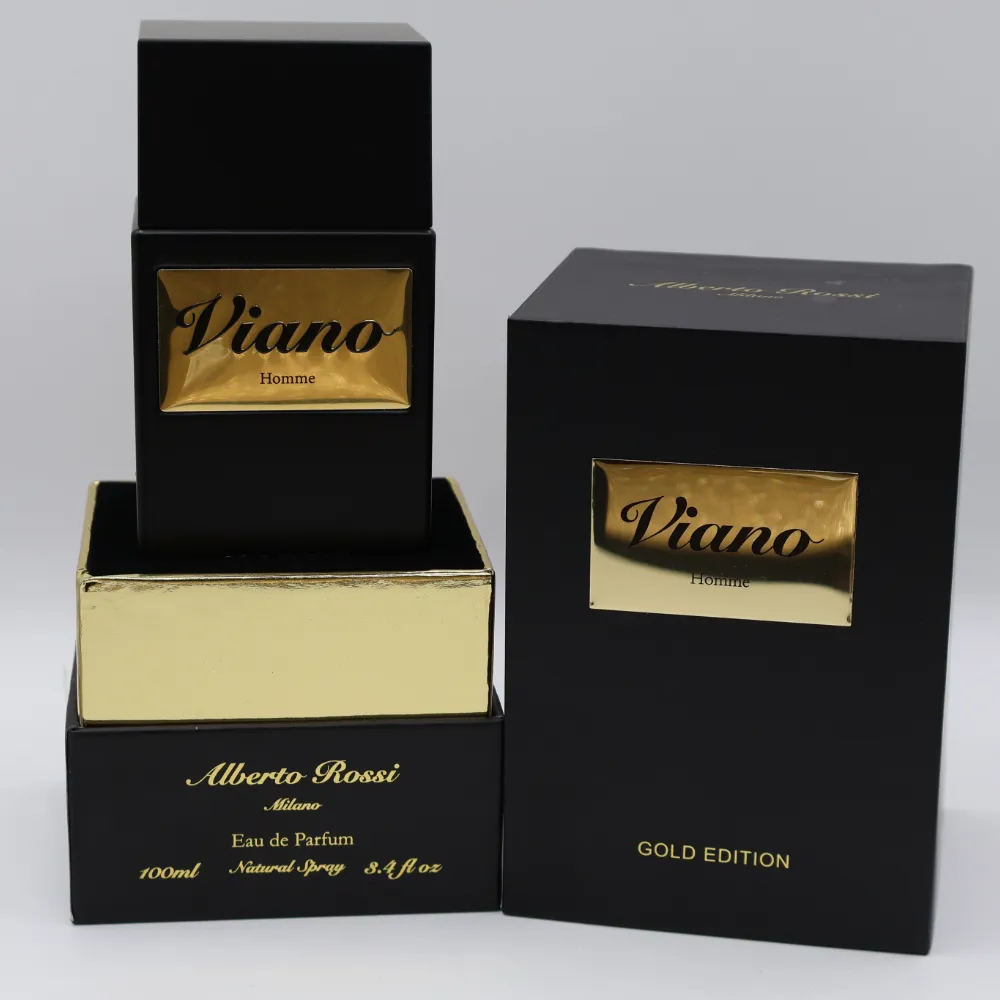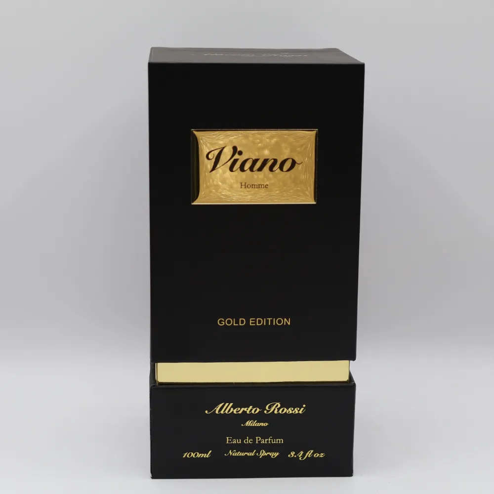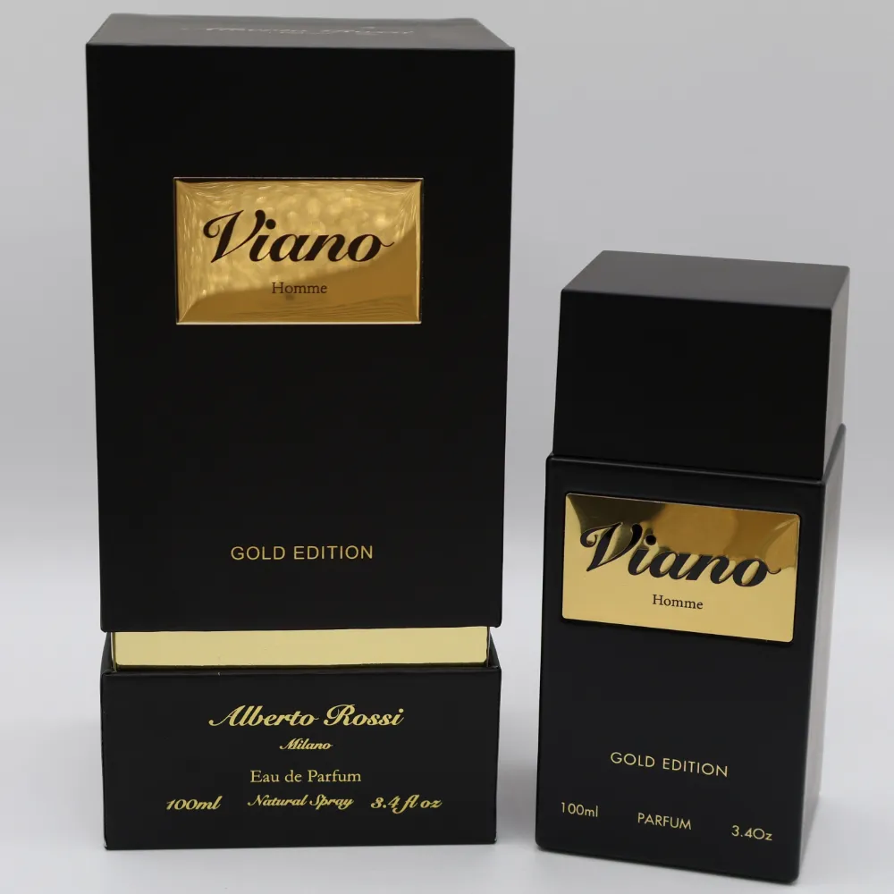 “Viano Homme – Gold Edition” is the pinnacle of refined masculinity. Encased in matte black with a gleaming gold accent, it delivers a bold, luxurious presence for the man who lives with purpose and prestige.